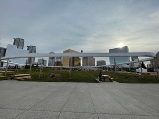 I worked for a decade at Grant MacEwan and walked past the empty buildings that would be repurposed as lofts and cut across the various parking lots that had been the Warehouse district, on my way to catch the LRT home. This was around the time that people joked about rolling the downtown sidewalks up at night. Eventually, things began to pick up again, but still no parkland, just some spindly trees here and there poking out of grates in the sidewalks.